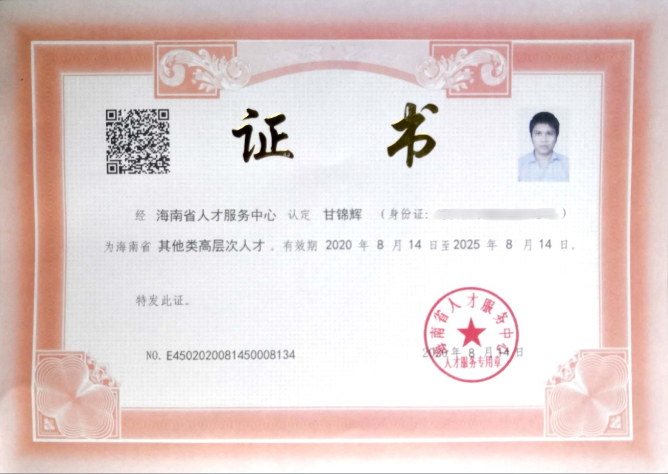 恭喜我司技術(shù)總監(jiān)甘錦輝同志通過海南省高層次人才評(píng)定,可以享受海南相關(guān)人才待遇。甘錦輝主要業(yè)績(jī)?nèi)缦拢?/span>